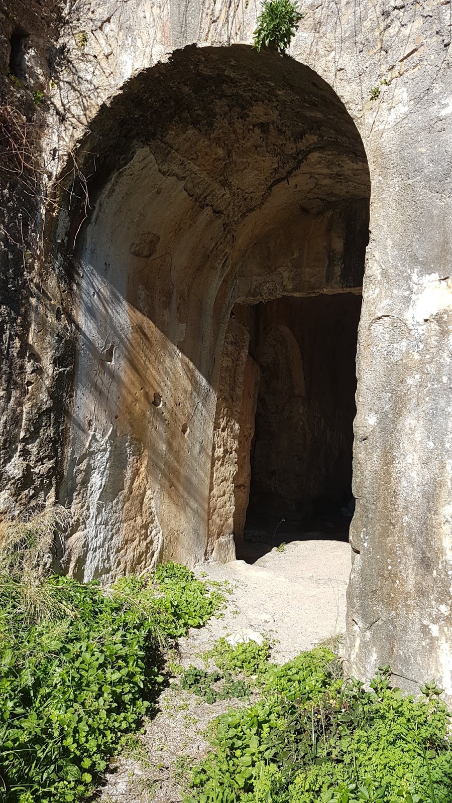 | Natural lighting inside the church comes from a hole in the cave's ceiling. |